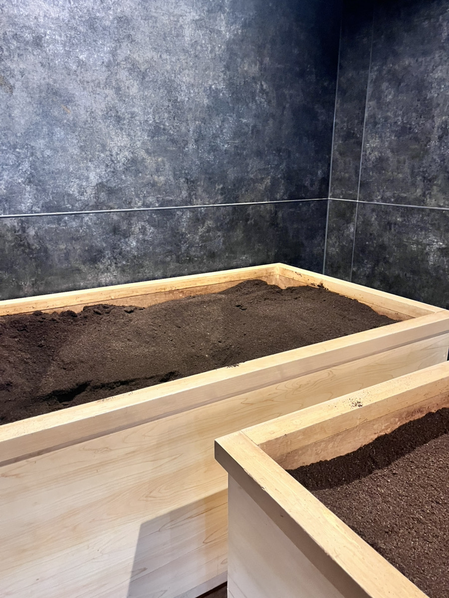 酵素浴(酵素風呂)とは、発酵した米ぬかやおがくずを敷き詰めた桶に身体をうずめ、電気やガスを使わず、自然な70度前後の発酵熱で身体を温める乾式の温浴法です。