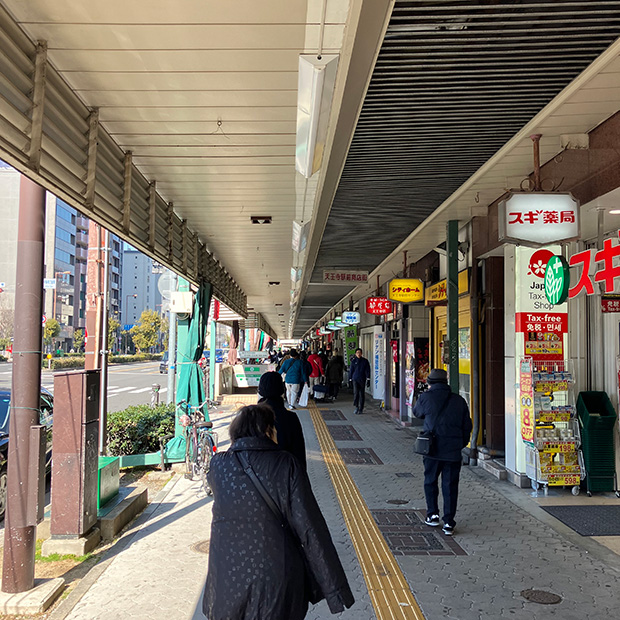 交差点を渡り、北にまっすぐアーケード沿いにすすみます